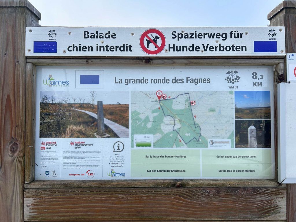 Sur le Parking de la Baraque Michel, vous trouverez un panneau d’information avec la balade rectangle bleu. Cette randonnée suit ce fléchage qui est en très bon état.