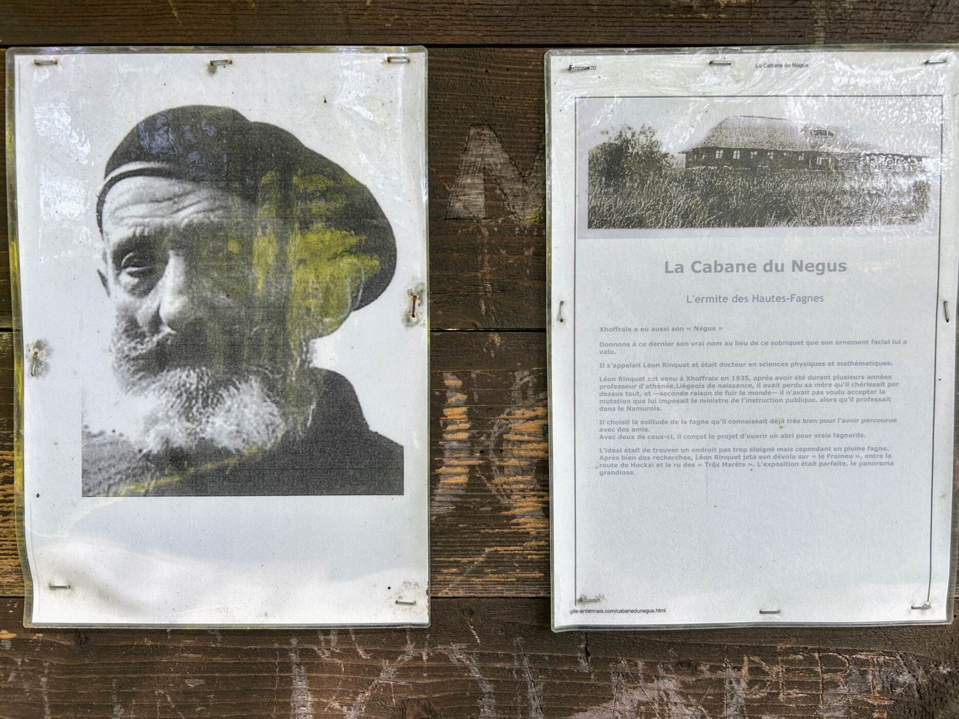En continuant sur le sentier, nous arrivons à un endroit chargé d’histoire : l’ancienne cabane du Négus, refuge du Dr Léon Rinquet, surnommé l’« Hermite des Hautes Fagnes ». Ce médecin, passionné de nature, a vécu plusieurs années en solitaire dans cette région, fasciné par la beauté sauvage des Fagnes. Sa cabane, aujourd’hui disparue, était un symbole de la vie simple et en harmonie avec la nature. Des panneaux didactiques sur place racontent son histoire fascinante et son engagement pour la préservation des Hautes Fagnes.